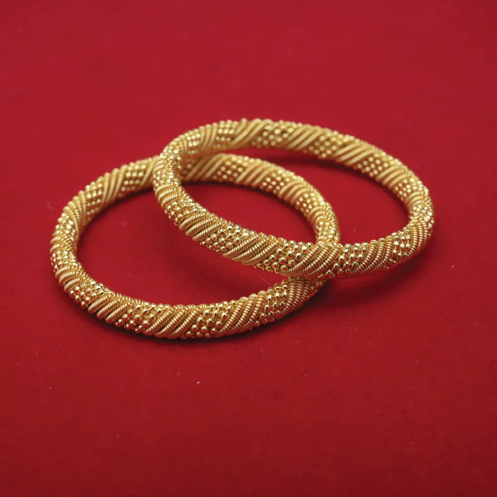 To ensure that this heavy and bold aesthetic doesn’t compromise your comfort, the inner core is hollowed out strategically, making the bangles surprisingly lightweight given their substantial width. The antique oxidation highlights the deeper grooves while the raised surfaces glisten like traditional pure gold. This creates a mesmerizing 3D texture that looks utterly luxurious from every angle. 🌟