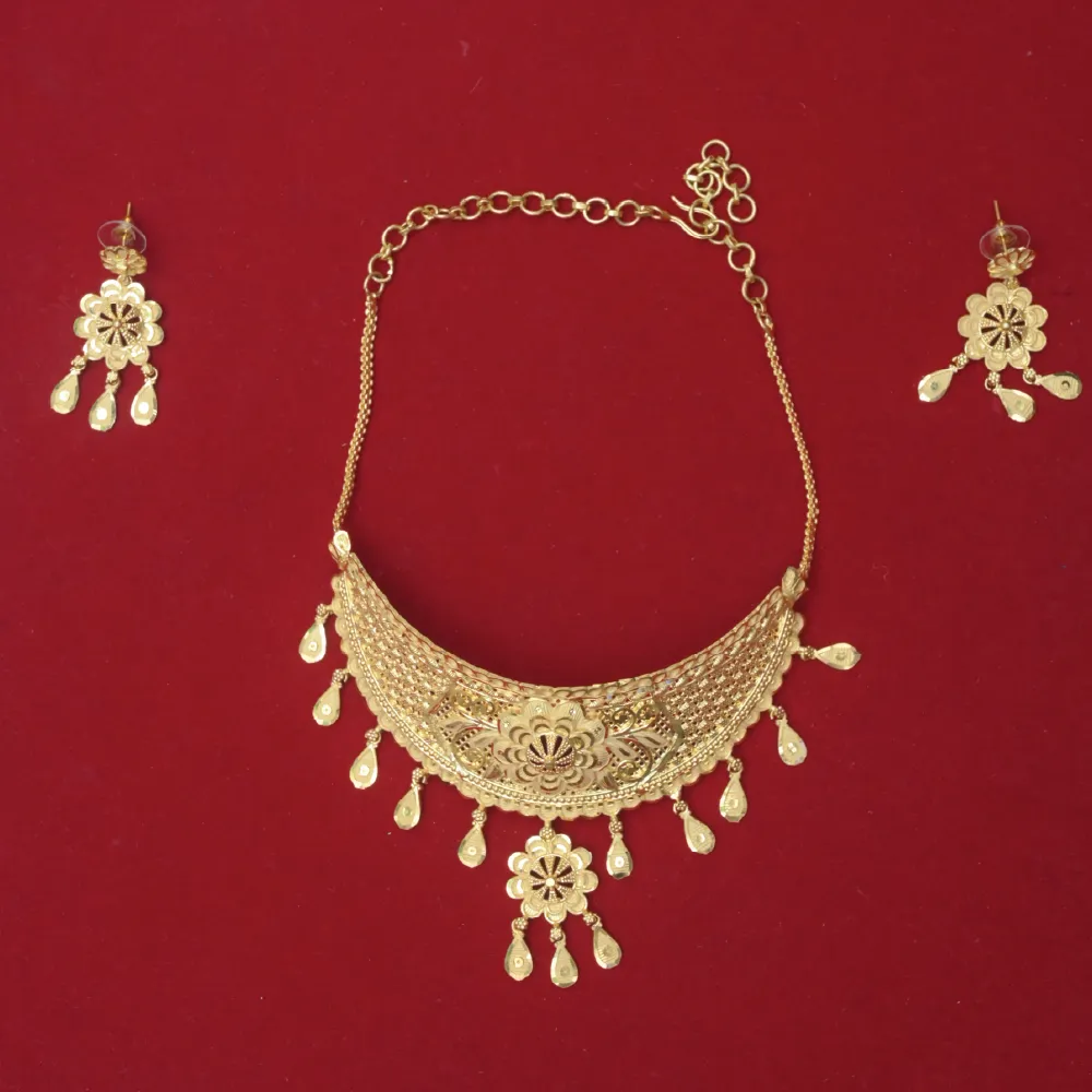 Despite its lavish, wide appearance, comfort is deeply prioritized. The choker utilizes a high-quality, adjustable dual-thread dori (drawstring) closure at the back, allowing you to loosen or tighten it precisely to your neck’s unique comfort level. Paired with beautifully matching heavy drop earrings, the entire set is structurally optimized to remain as lightweight as possible without sacrificing its imposing, heavy-look grandeur. 🌟